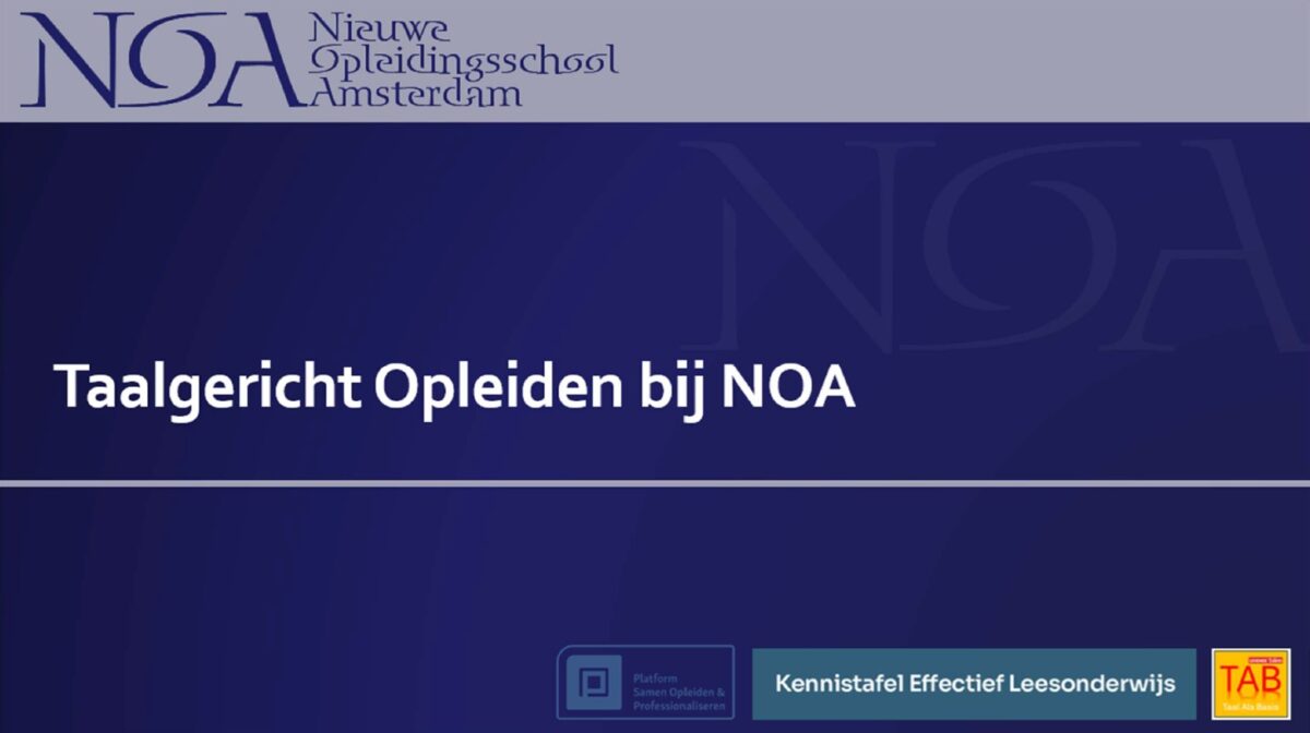 Nieuwe Opleidingsschool Amsterdam (NOA) heeft vanaf opleidingsjaar 2024-2025 een duidelijke focus gelegd op taalgericht opleiden. Die keuze komt voort uit de constatering dat taal een cruciale factor is voor het studiesucces van leerlingen op de partnerscholen. NOA wil daarom dat opleiders taalbewuster worden en deze expertise meenemen in hun opleidingspraktijk.